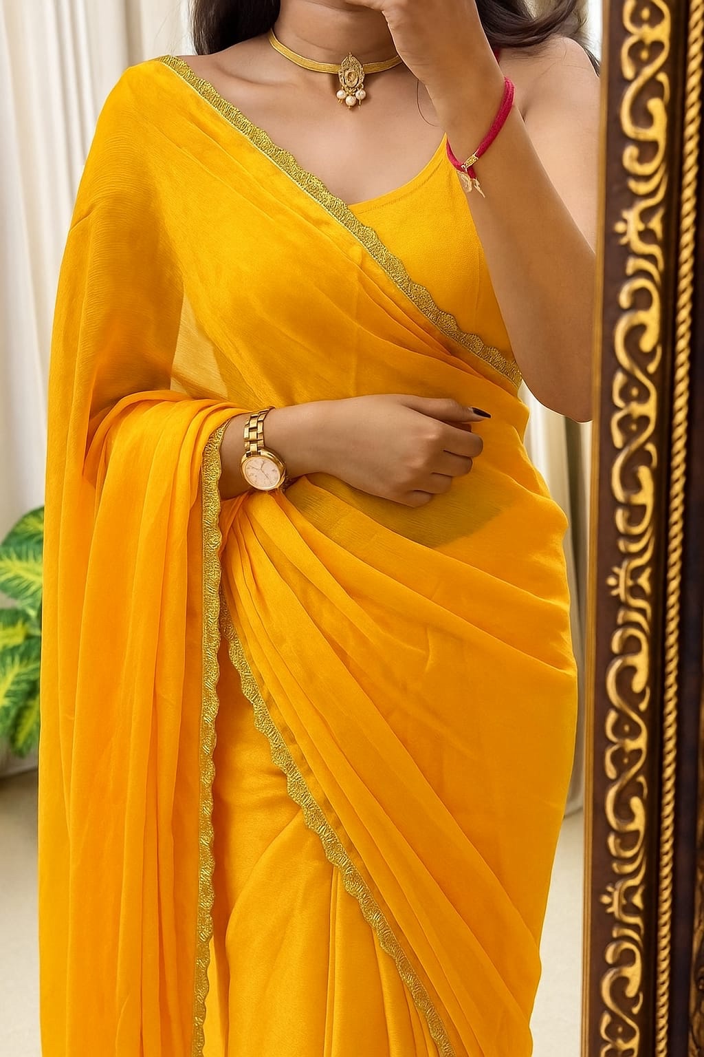 Fabric details – Soft & smooth space silk with beautiful handwork lace border