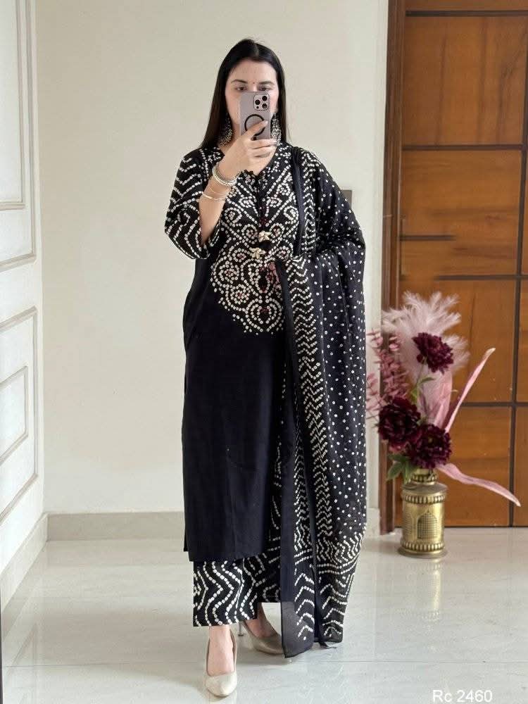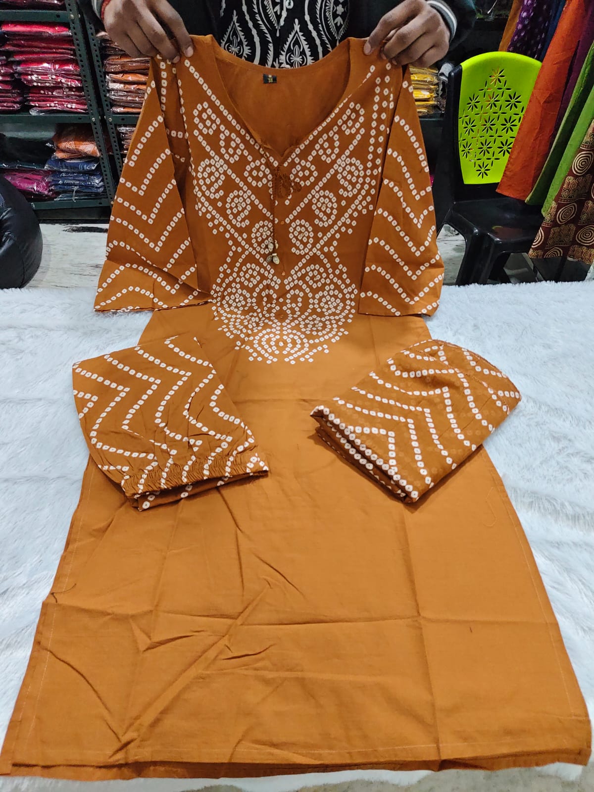 Step into festive elegance with this stunning Tubelight Work Cotton Suit Set, designed to blend timeless tradition with a modern touch. Crafted from soft and breathable pure 60×60 cotton fabric, this outfit ensures all-day comfort while maintaining a rich and graceful appearance. The kurti is beautifully enhanced with original heavy tubelight work, adding a unique shimmer and intricate detailing that elevates the overall look. Paired with a comfortable matching pant, the set offers ease of movement along with a flattering silhouette. Completing the ensemble is a heavy printed mal cotton dupatta, approximately 2.20 meters in length, featuring elegant discharge prints that add a vibrant and stylish finish. The thoughtful combination of fine craftsmanship and premium fabric makes this outfit perfect for festive occasions, family gatherings, cultural events, and special celebrations. Designed in multiple sizes, it provides a comfortable and well-fitted look for different body types. With its blend of traditional artistry, modern styling, and high-quality materials, this suit set is a perfect choice for those who want to stand out with elegance and sophistication while enjoying unmatched comfort.