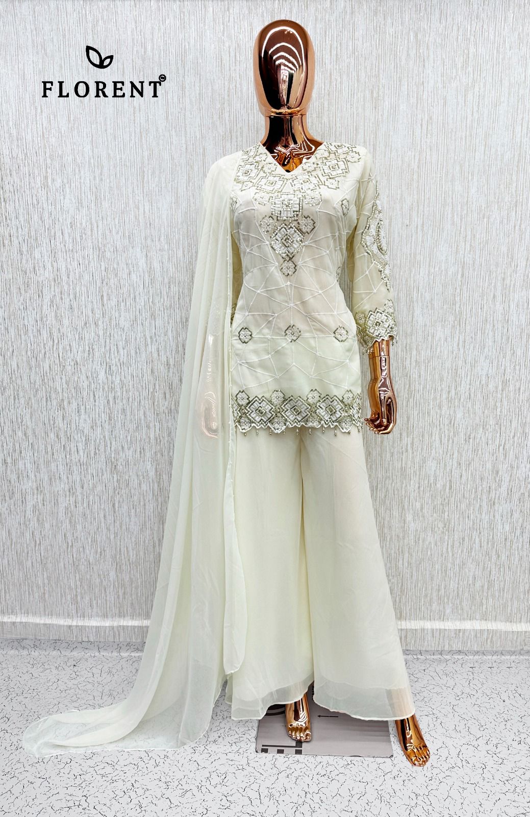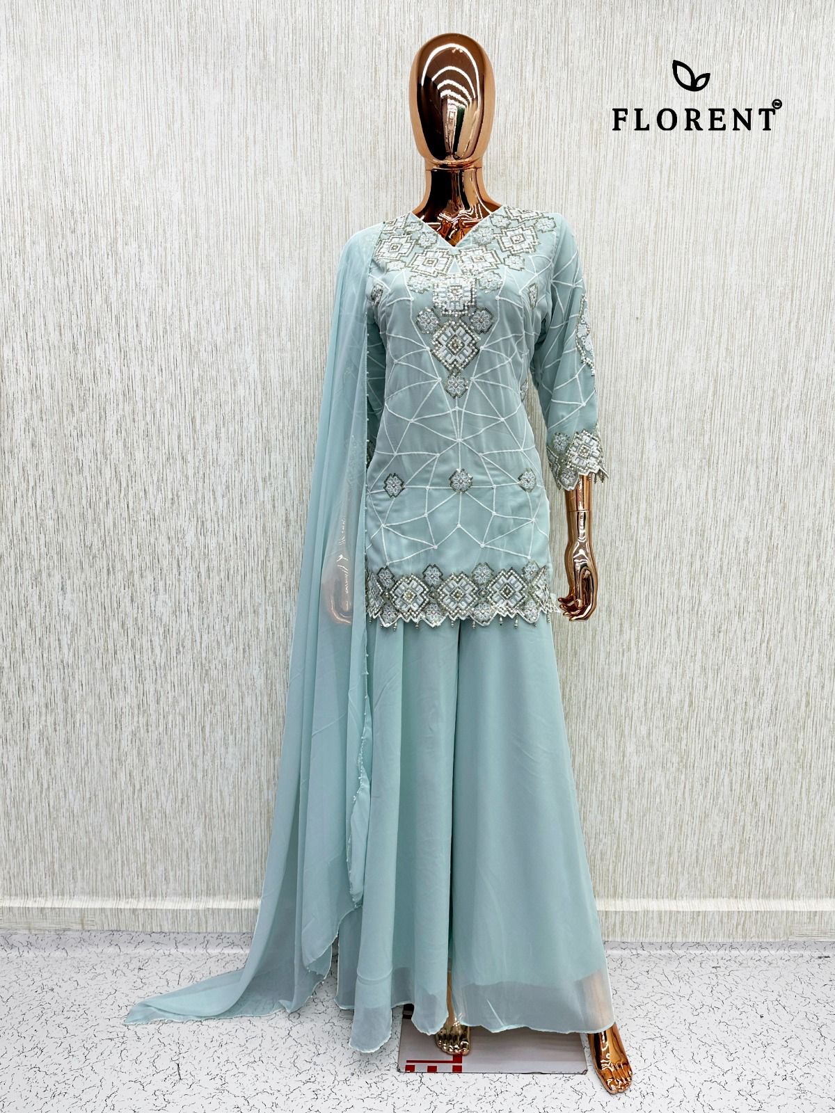 Georgette Sequins Embroidered Kurta Palazzo Set with Lace DupattaGeorgette Sequins Embroidered Kurta Palazzo Set with Lace Dupatta
