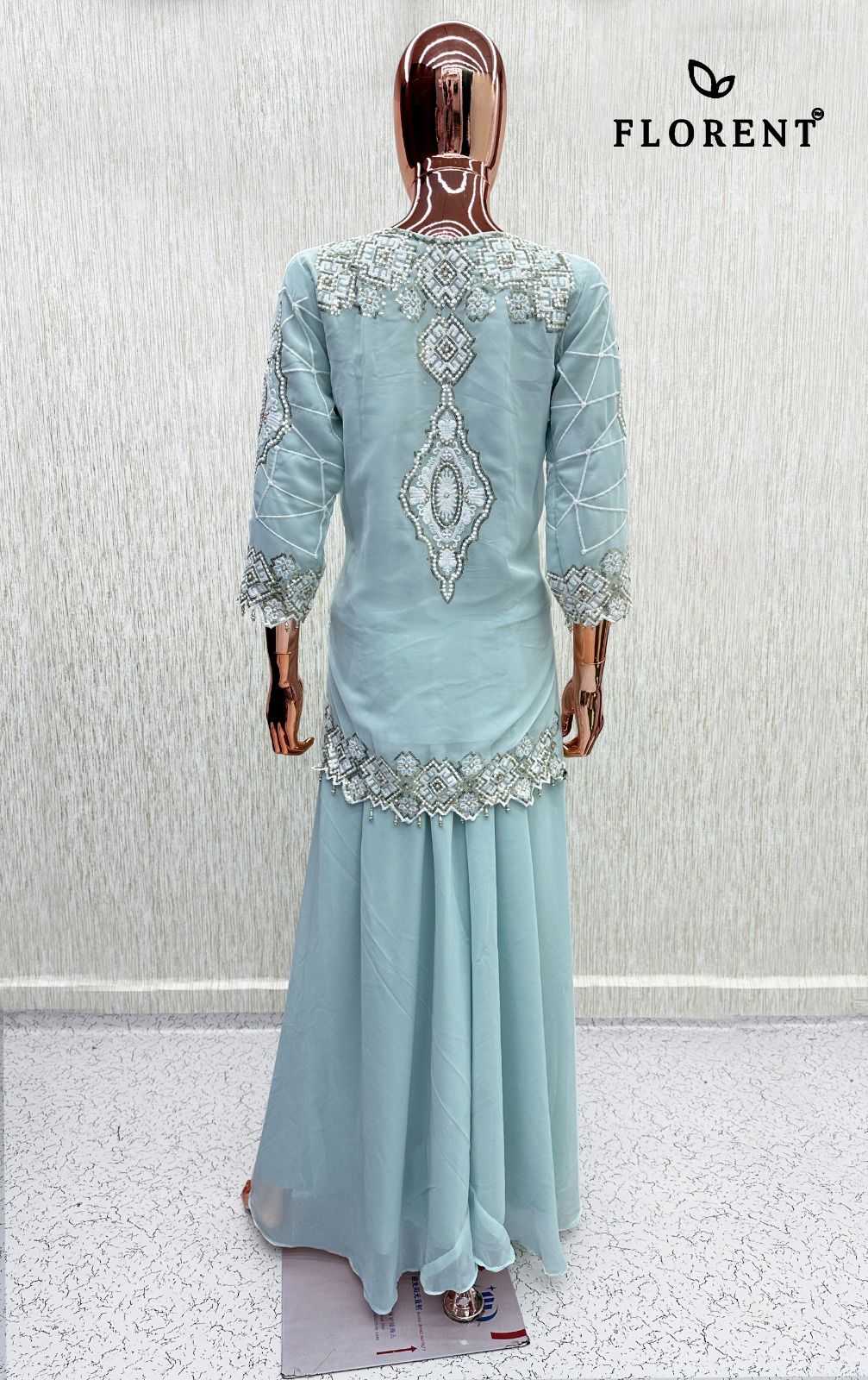 Be the first to review “Georgette Sequins Embroidered Kurta Palazzo Set with Lace Dupatta”