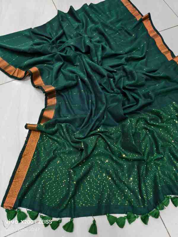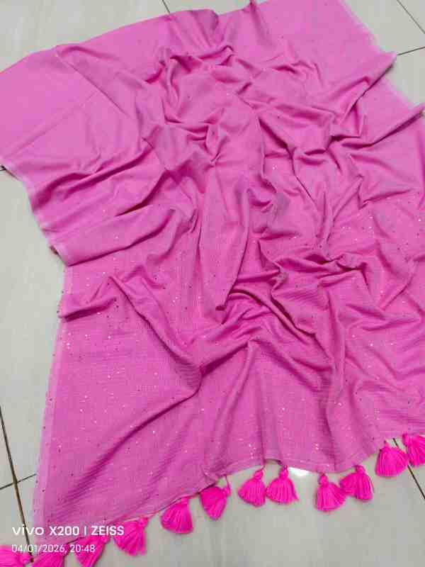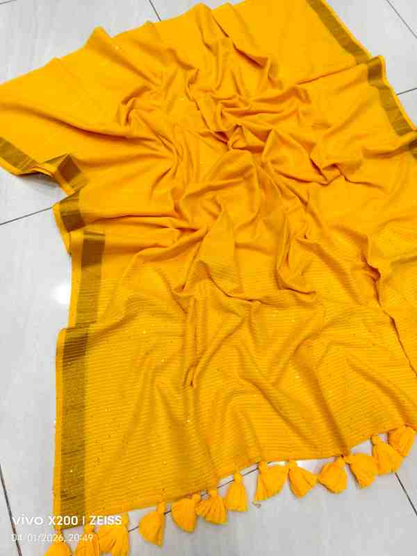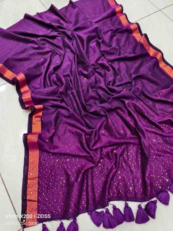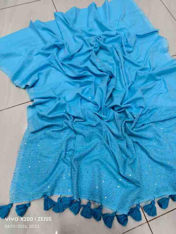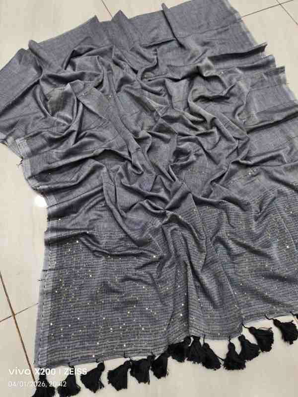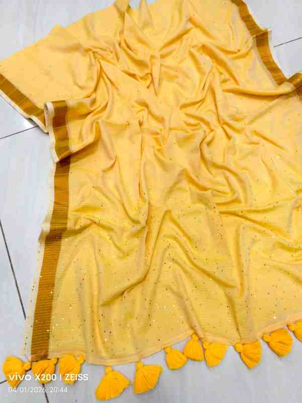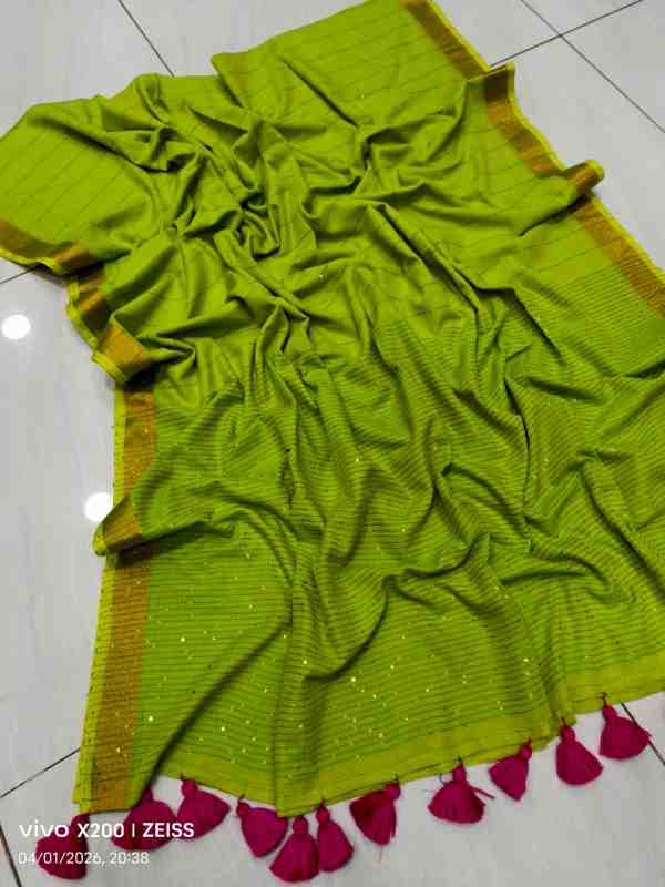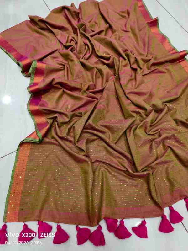 Add a touch of elegance to your wardrobe with this handloom sequence mul cotton saree, designed for comfort and graceful styling. Crafted from soft mul cotton fabric, the saree offers a lightweight and breathable feel, making it perfect for all-day wear in any season. The subtle sequence detailing enhances its charm, while the antique zari border adds a traditional and refined finish, giving it a perfect balance of simplicity and sophistication.