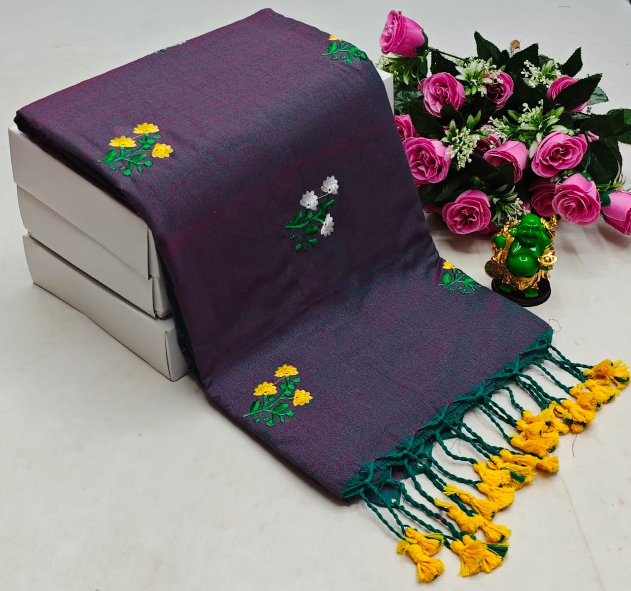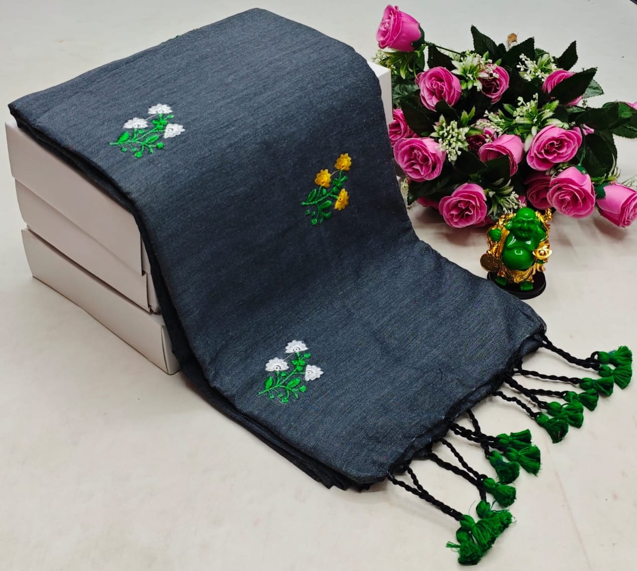 Khadi Cotton Embroidery Work Saree