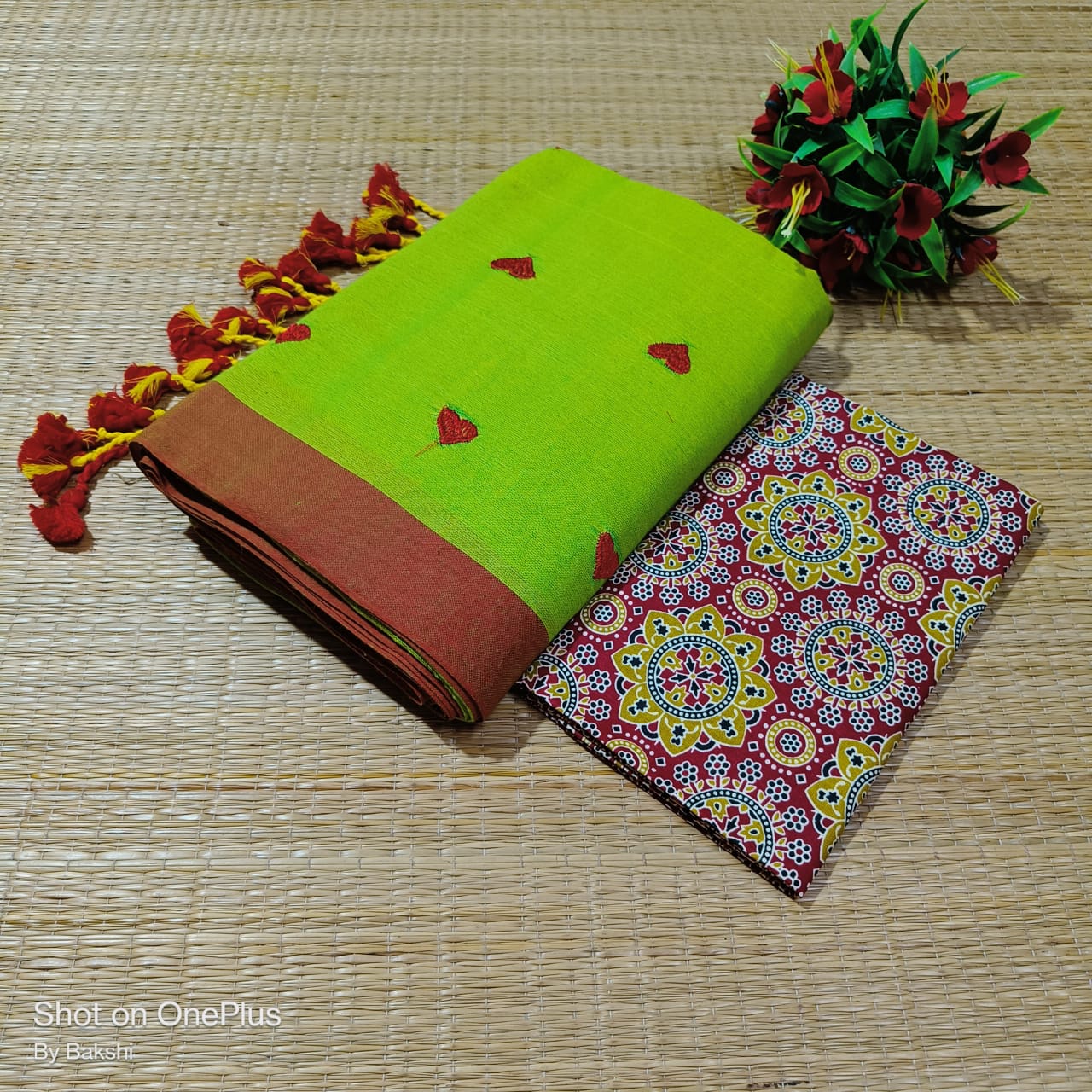 – *Blouse:* Running blouse piece and extra Kalamkari blouse piece