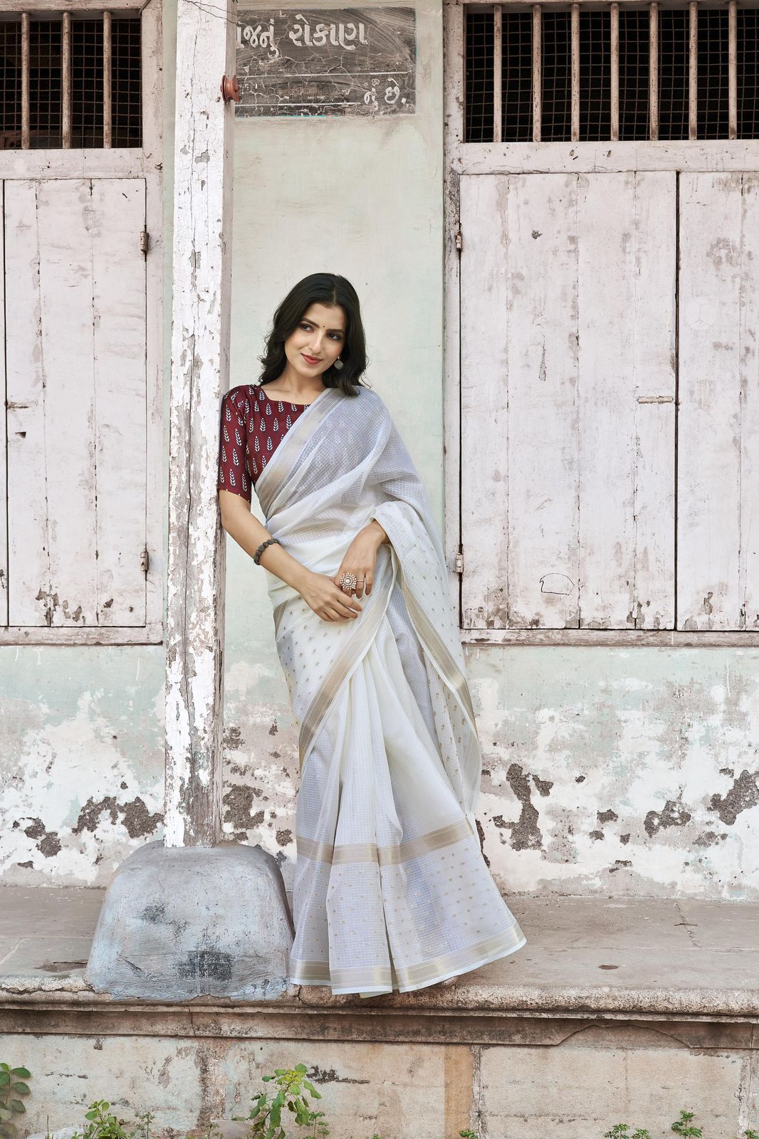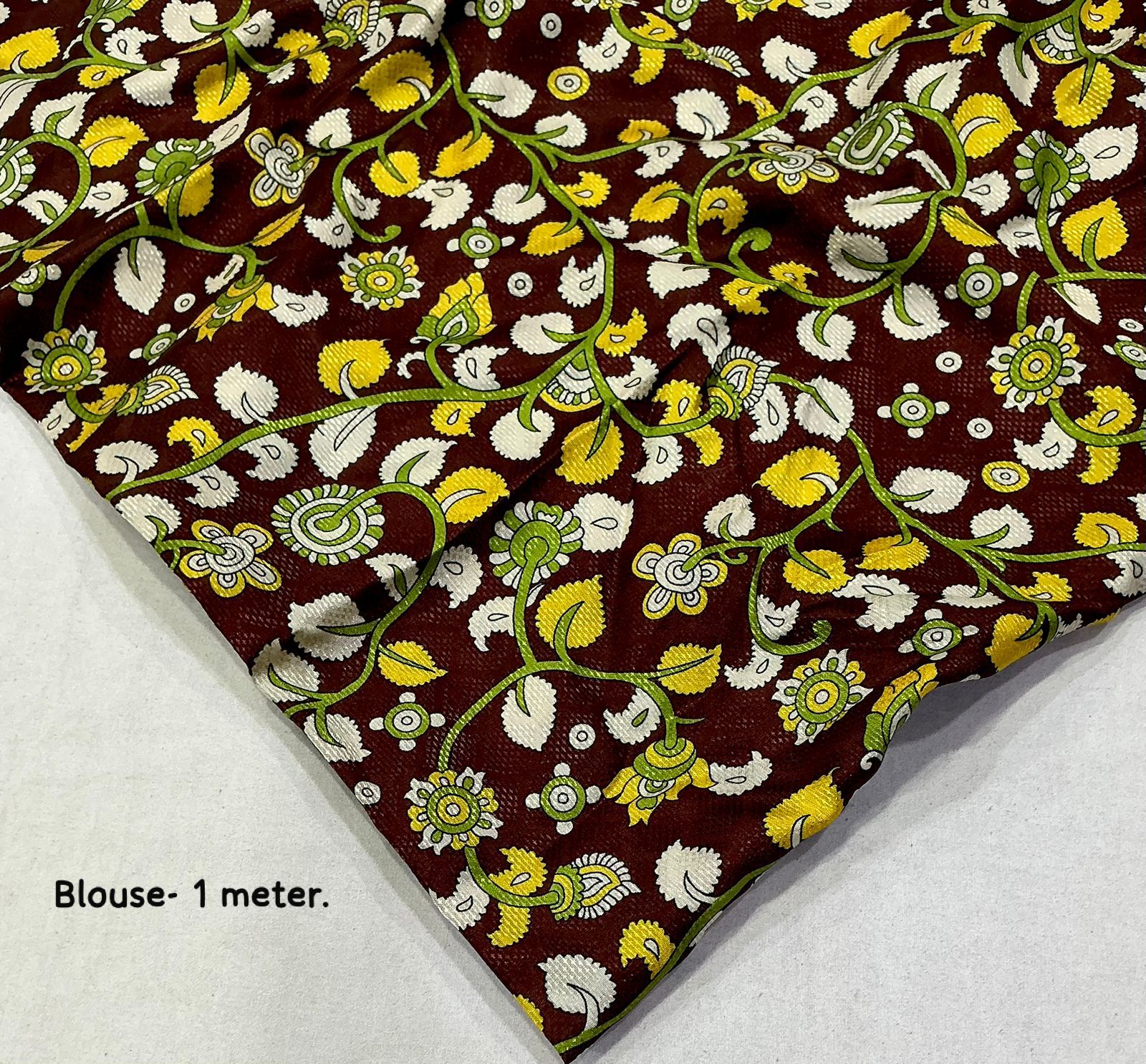 Kota Ajrakh Kalamkari Zari Butti Saree with Contrast Crepe Silk Blouse
