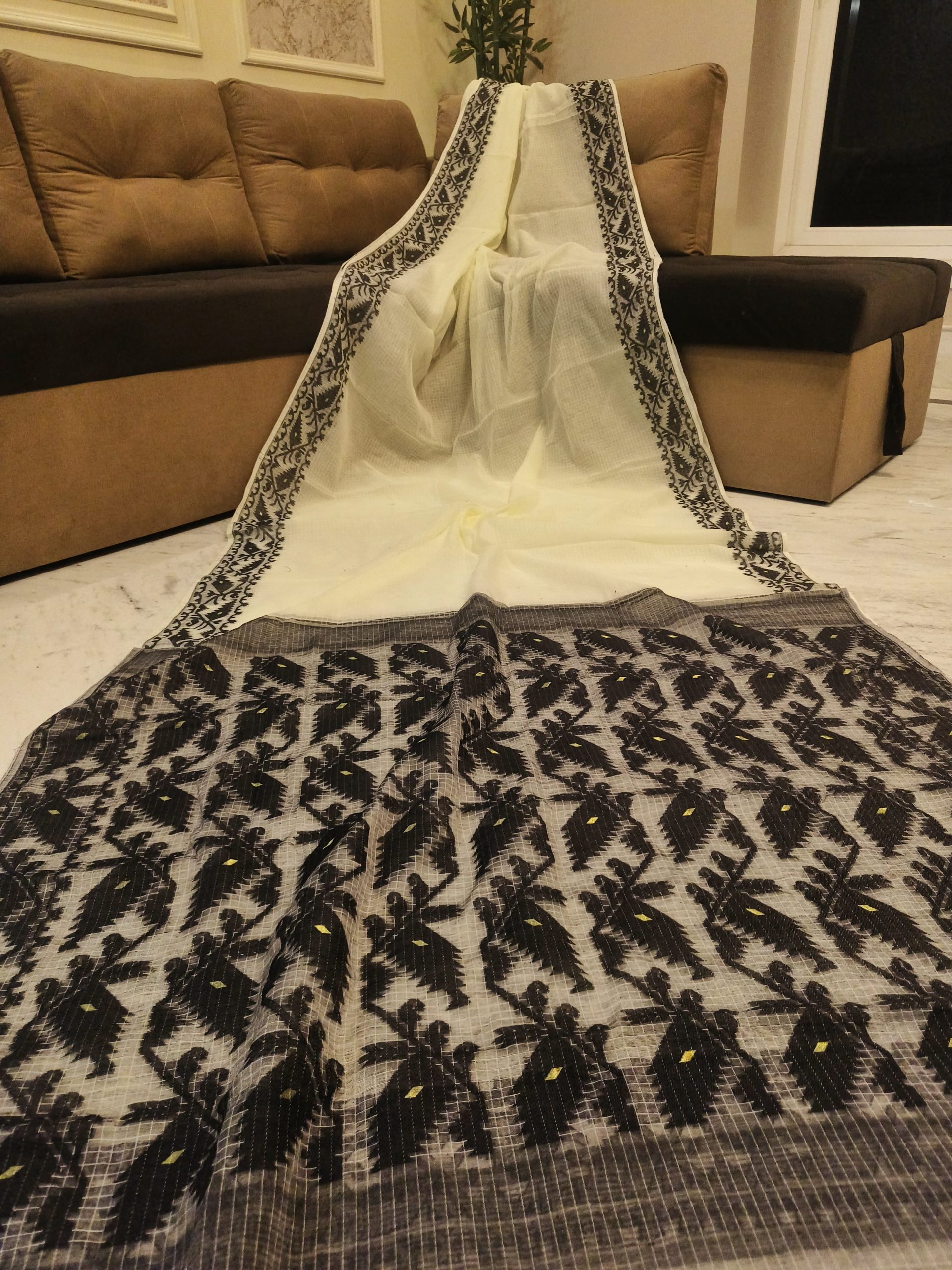 This exquisite Jamdani saree is a masterpiece of handwoven artistry. Crafted with intricate motifs woven directly into the fabric, it showcases the unmatched skill of traditional weavers. Soft, lightweight, and luxurious, this saree drapes beautifully, making it perfect for festive occasions, weddings, and cultural celebrations. Premium Kota Soft Jamdani Saree