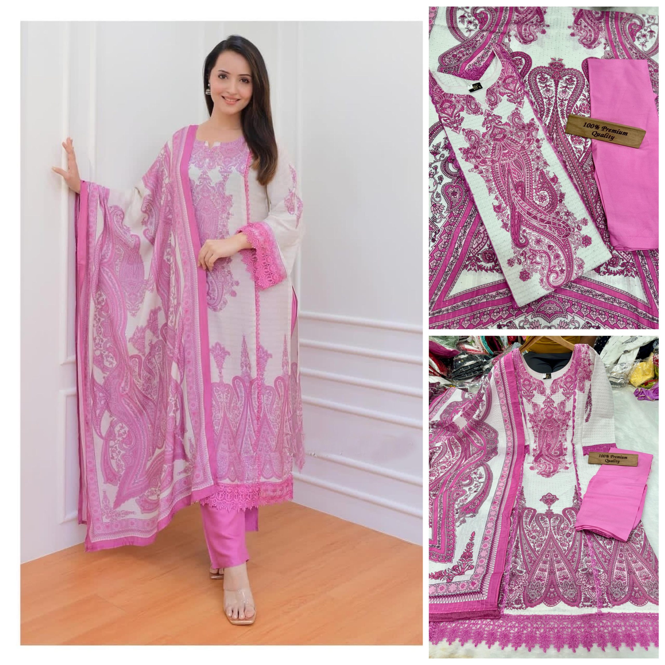 Step into style with this hot and latest Maria B family kurta set, designed to bring together elegance and modern ethnic charm. Crafted from beautiful printed Maslin fabric, the kurta features intricate sequence work along with detailed daman and sleeves, giving it a rich and festive appeal. The set is paired with a comfortable rayon cotton pant that ensures ease of movement and all-day comfort, while the matching printed Maslin dupatta with sequence work adds a graceful finishing touch to the overall look.
