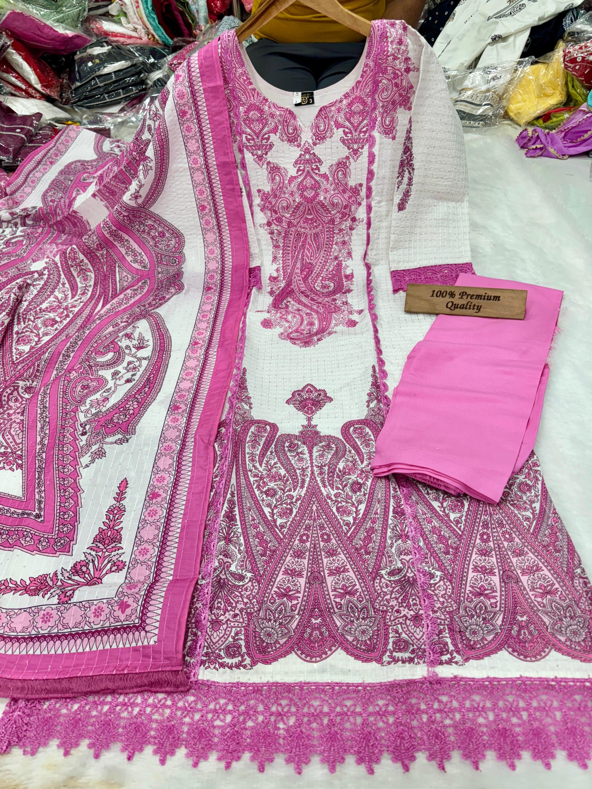 Maria B Maslin Printed Sequins Kurta Set with Dupatta