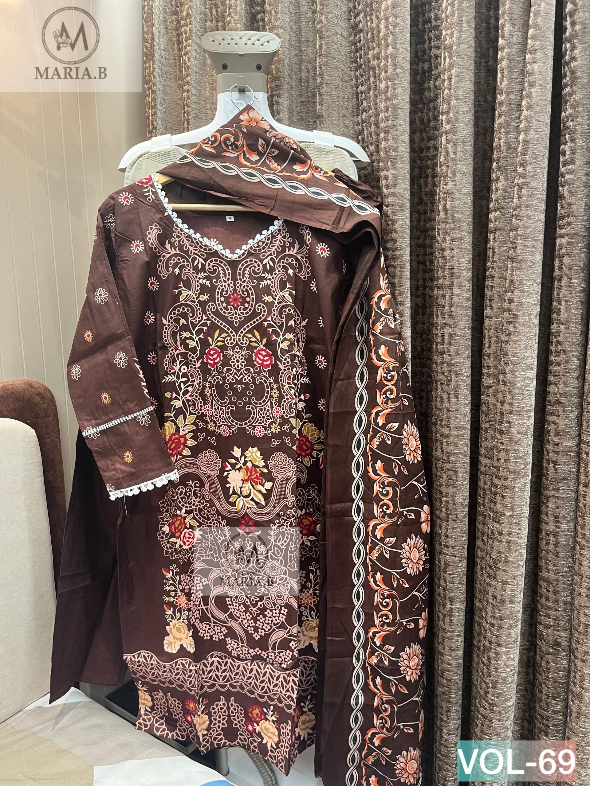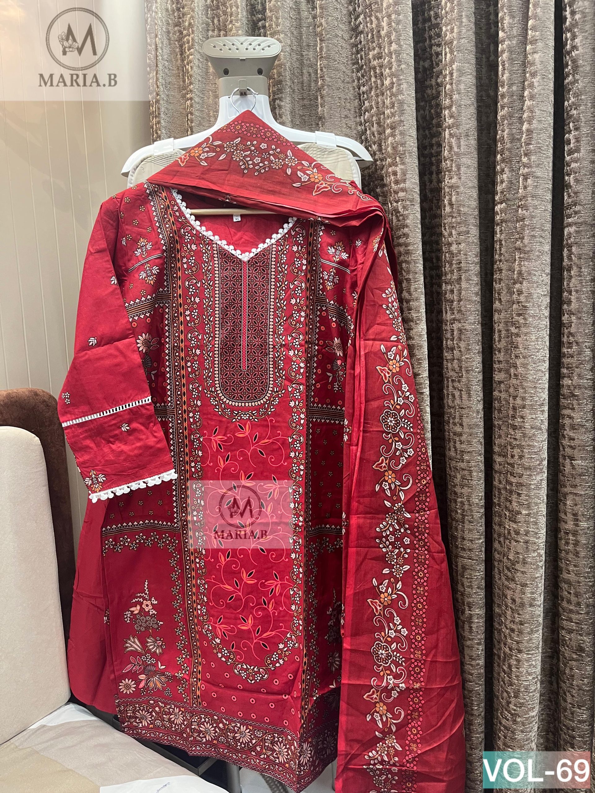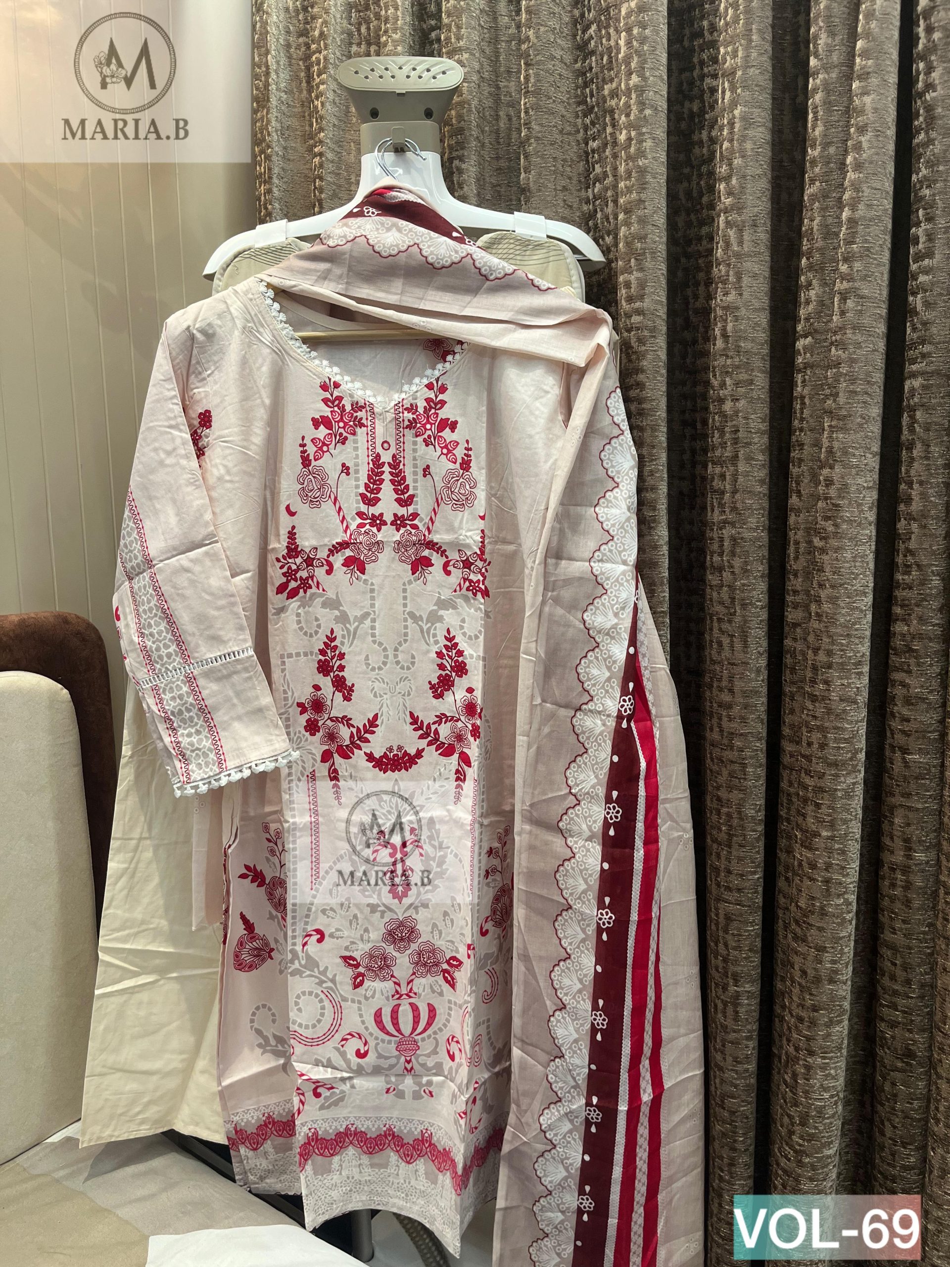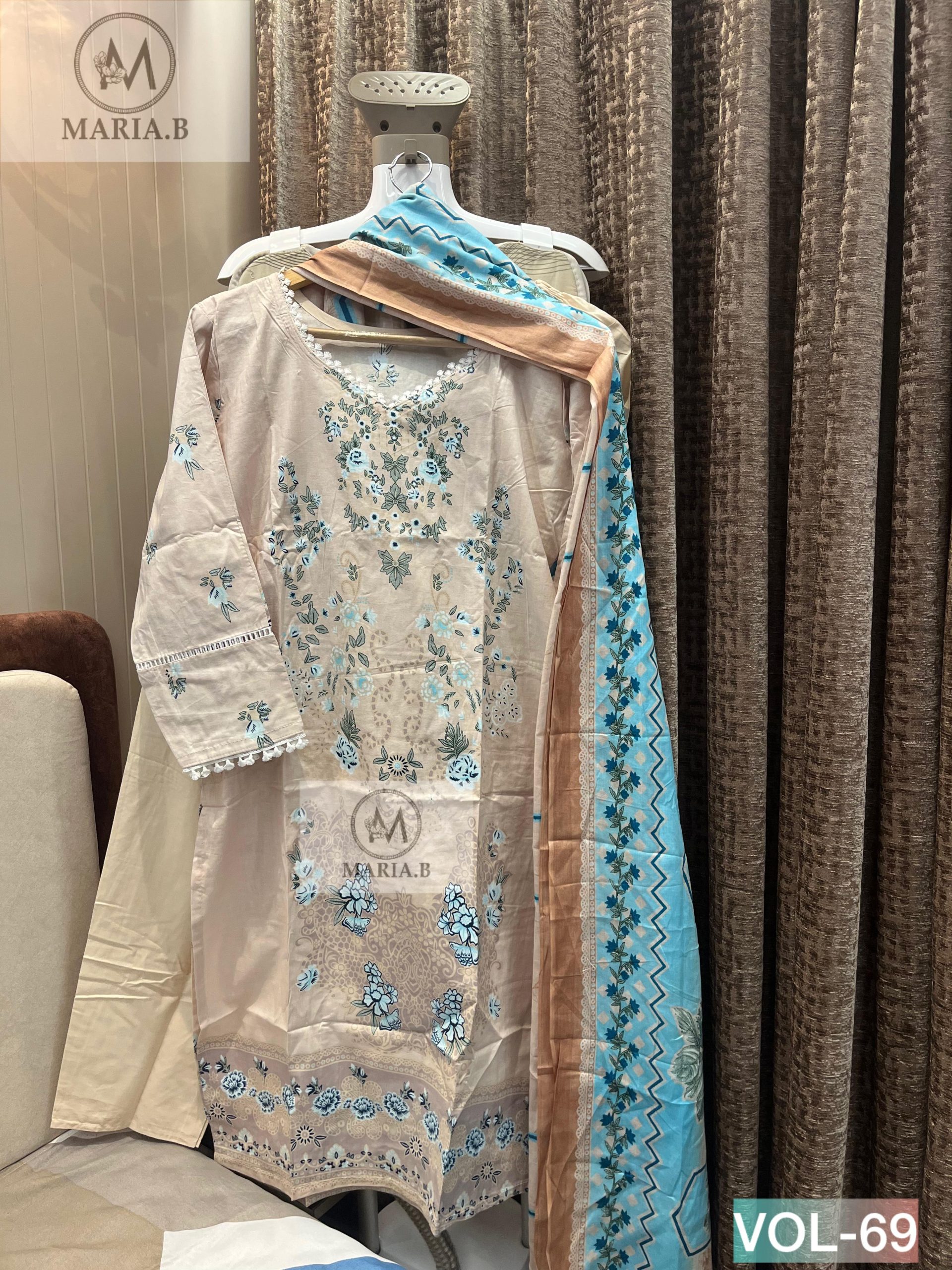 Upgrade your everyday ethnic style with the Maria.B Stitch Vol-69 readymade collection, designed for comfort, elegance, and effortless wear. Crafted from soft printed cotton fabric, the kurta offers a breathable and lightweight feel, perfect for daily wear, office use, and casual outings. It is paired with a matching stitched cotton bottom and a coordinated cotton dupatta, creating a complete 3-piece set that blends simplicity with style. The outfit is tailored to provide a comfortable and flattering fit while maintaining ease of movement throughout the day.