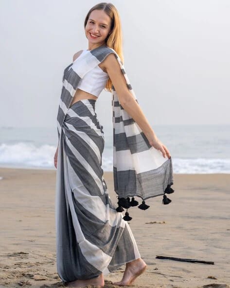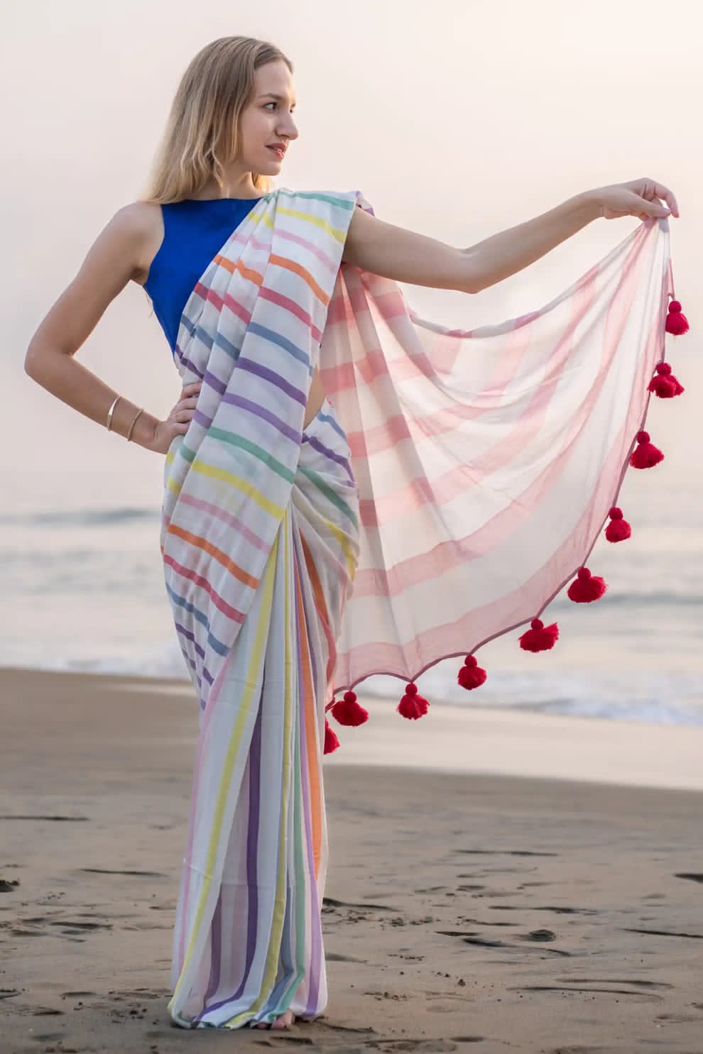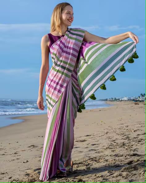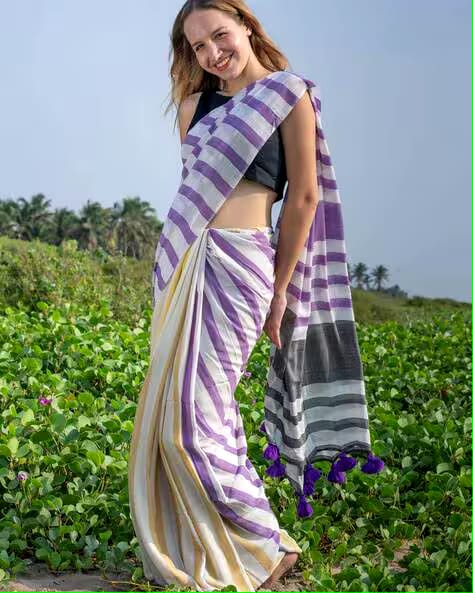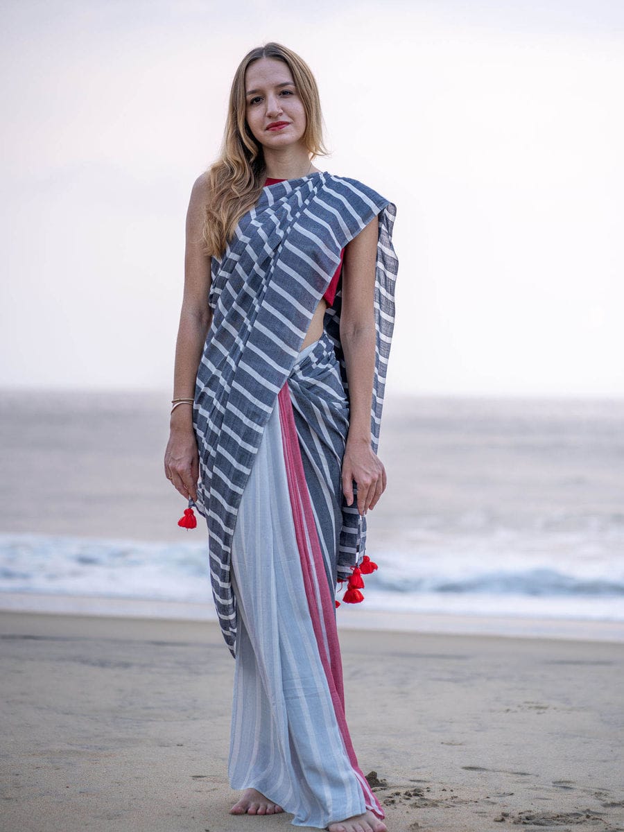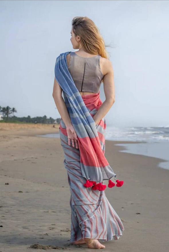 Multicolour Khadi Cotton Saree with Blouse PieceMulticolour Khadi Cotton Saree with Blouse Piece