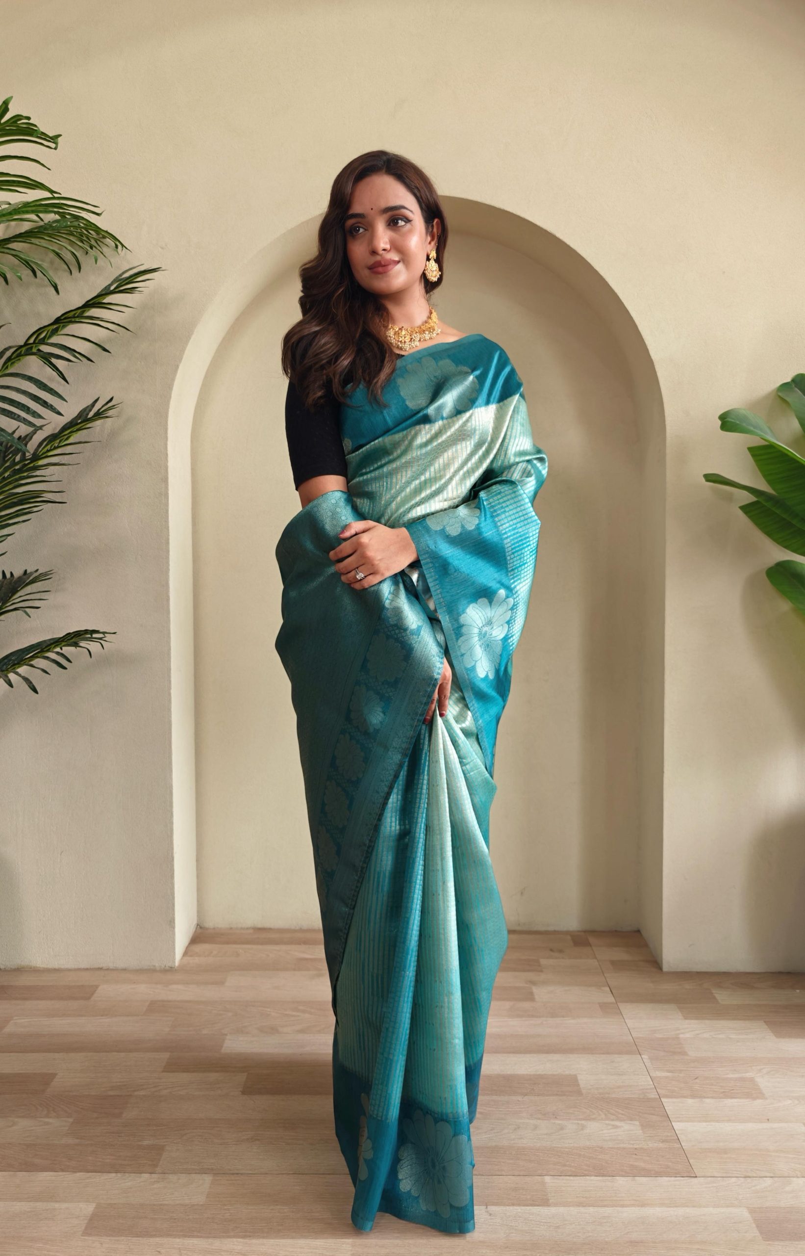 Experience the elegance of tradition blended with modern charm in our Premium Printed Silk Weaving Sarees. Crafted with exquisite attention to detail, each saree features a luxurious silk fabric adorned with silver zari motif design patterns that exude timeless beauty. The body comes in a mesmerizing combination of multi-colored digital prints and intricate weaving, creating a perfect harmony of color and craftsmanship. The rich contrast pallu adds a royal touch, while the beautifully woven floral border pattern enhances its traditional appeal. Paired with a contrast blouse as seen in the video, this ensemble is designed to make you stand out gracefully at any festive or special occasion.