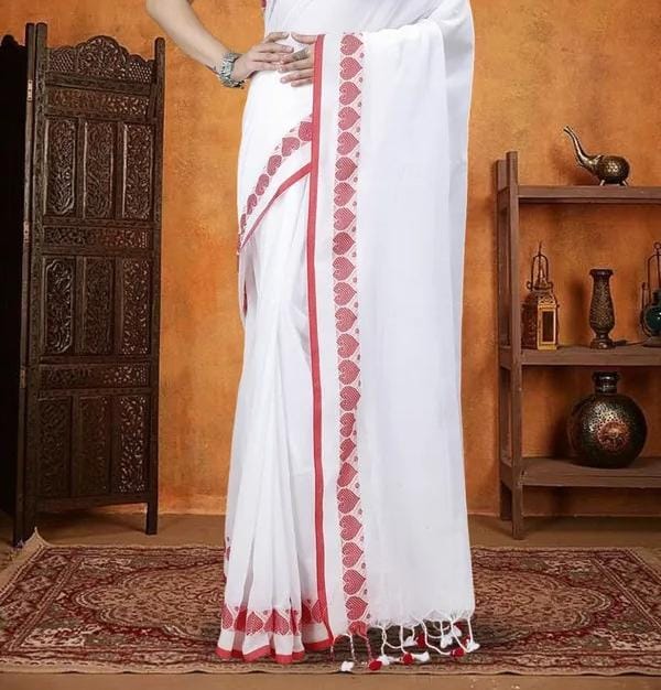 Experience the authentic charm of Indian heritage with our Pure Khadi Cotton Handloom Saree. This beautifully crafted saree features a stunning jacquard weaving “Love” design in the border, adding a touch of elegance and romance to your look. Paired with an attached running blouse piece, it’s perfect for everyday wear or special occasions.