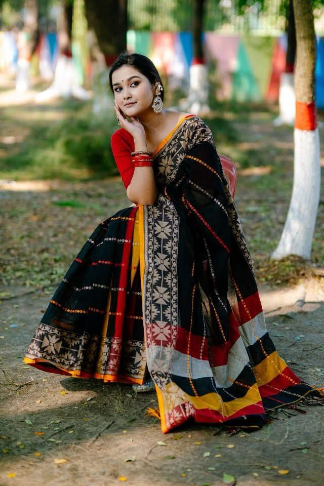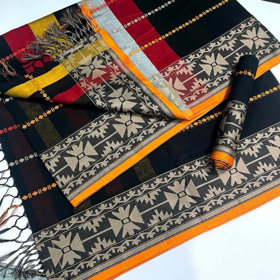 Experience timeless elegance with this pure khadi cotton handloom saree, crafted to offer a perfect blend of tradition and comfort. Made from premium quality khadi cotton, the saree is soft, breathable, and ideal for all-day wear, especially in warm weather. It features a beautiful jacquard weaving design across the border and body, adding a subtle yet rich texture that enhances its overall appeal. The lightweight fabric ensures easy draping and a graceful fall, making it suitable for both casual and traditional occasions.