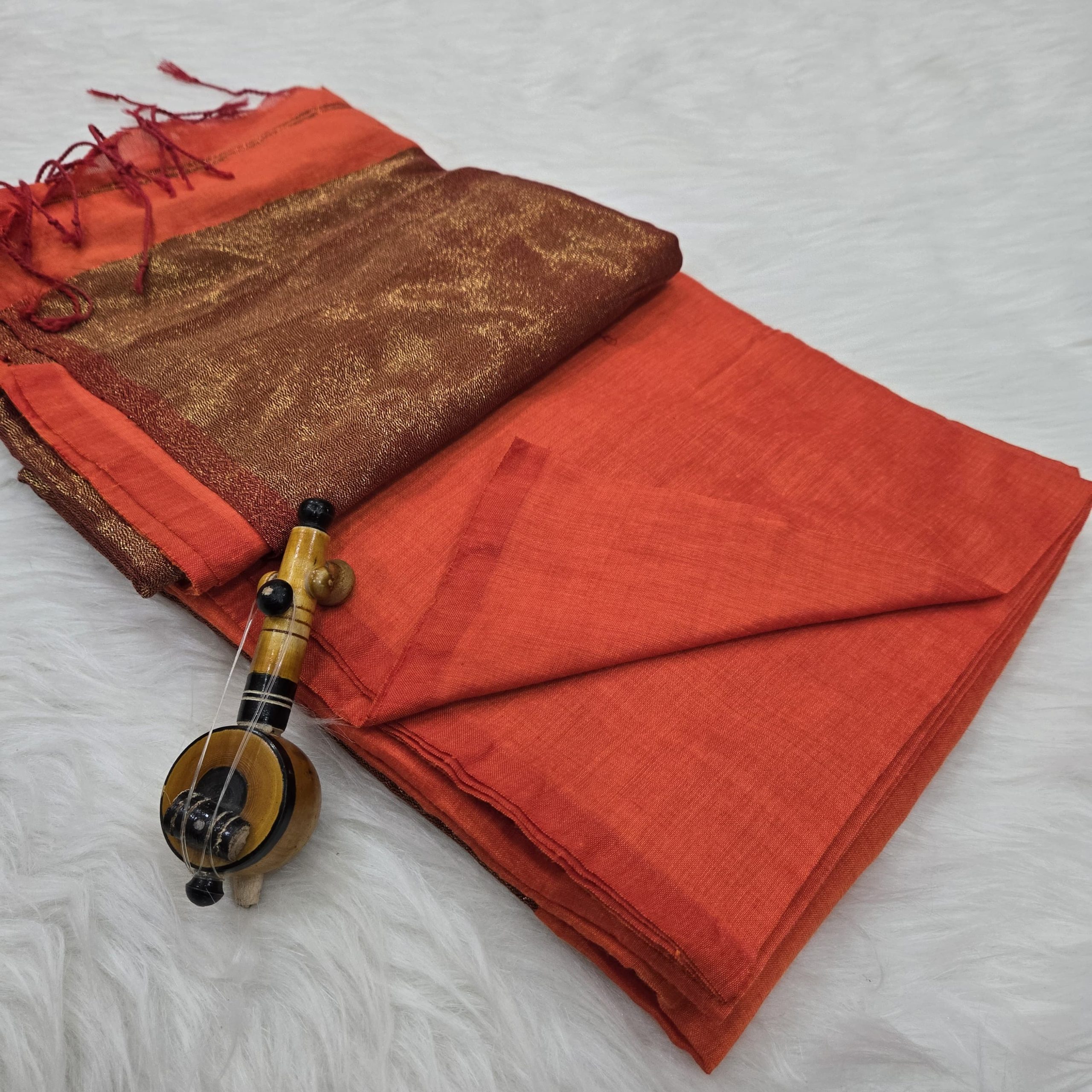 Pure khadi cottytested jhari pallu saree with customized blouse pice jhari broder