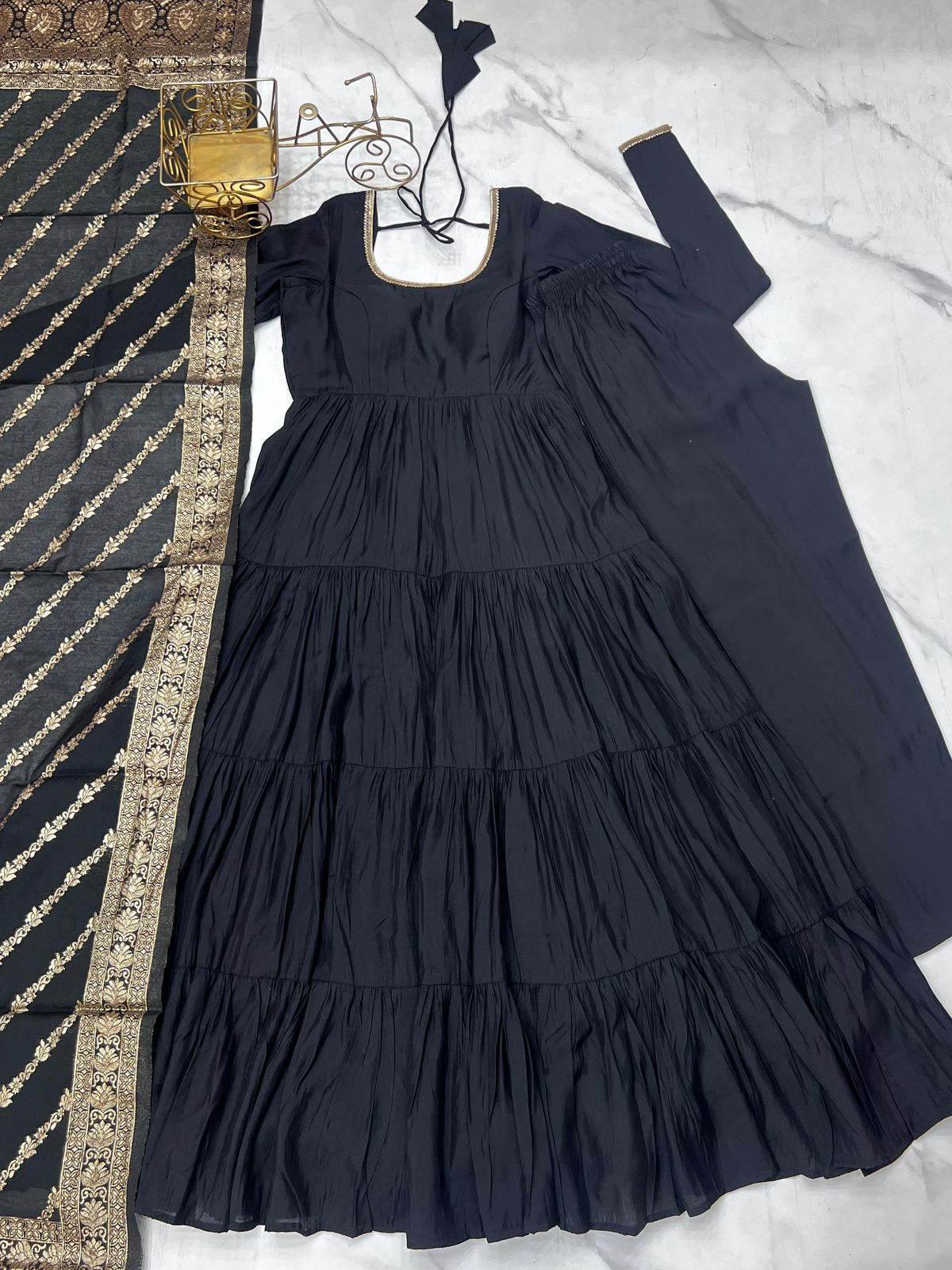 Be the first to review “PURE ROMANSILK CHANDERI FABRIC FULLY FLAIR ANARKALI,”