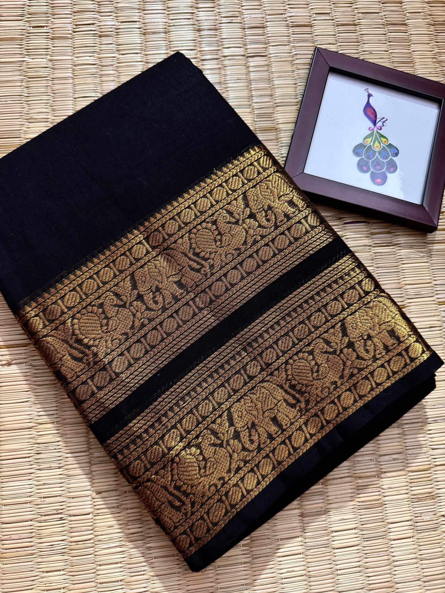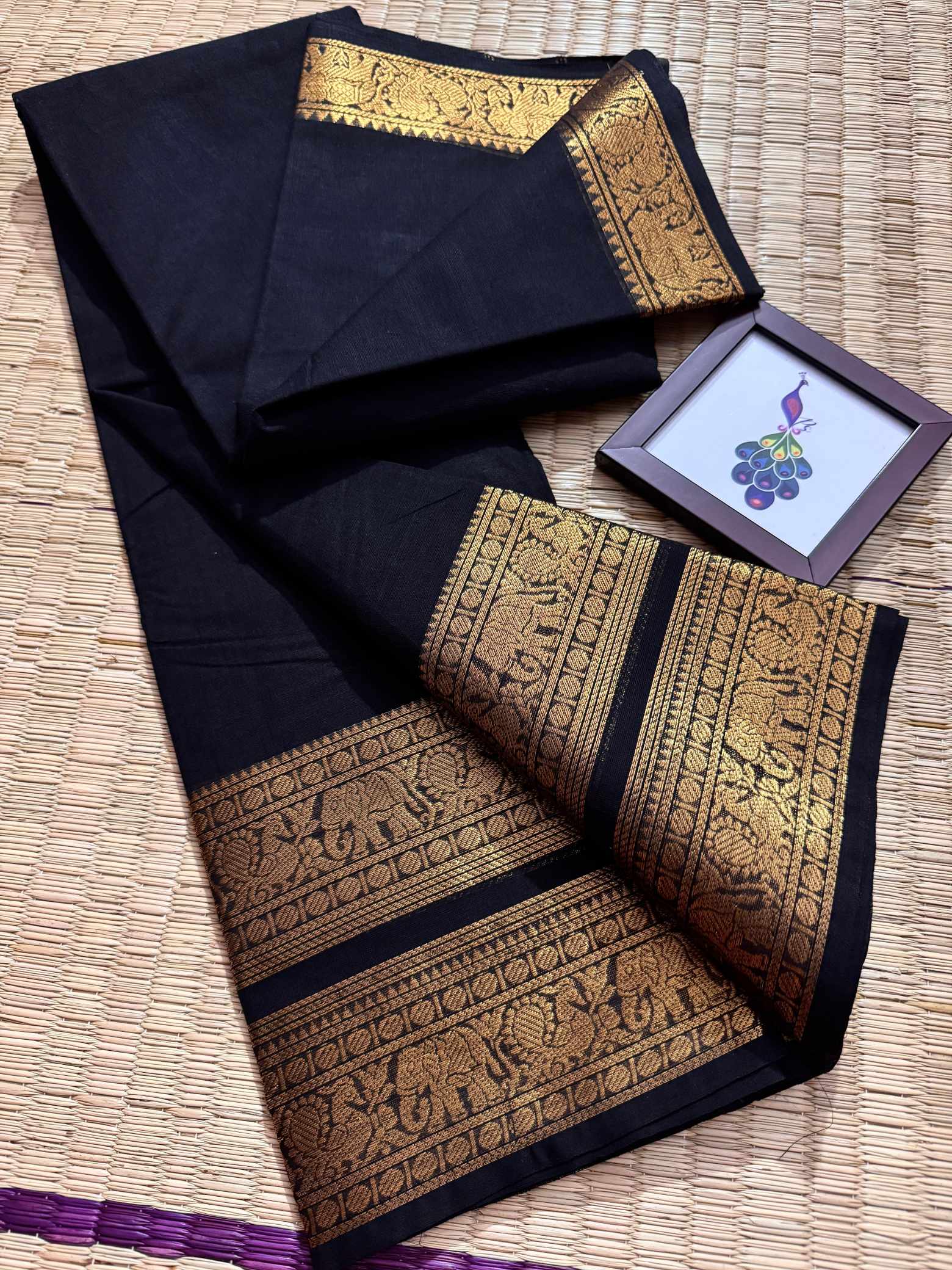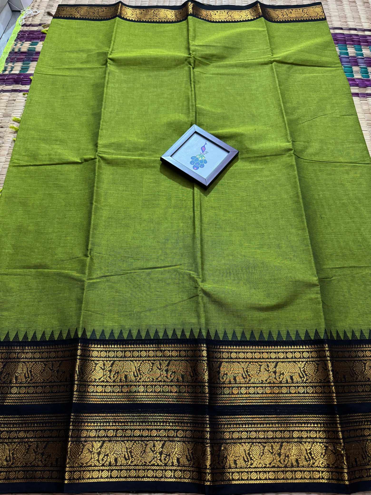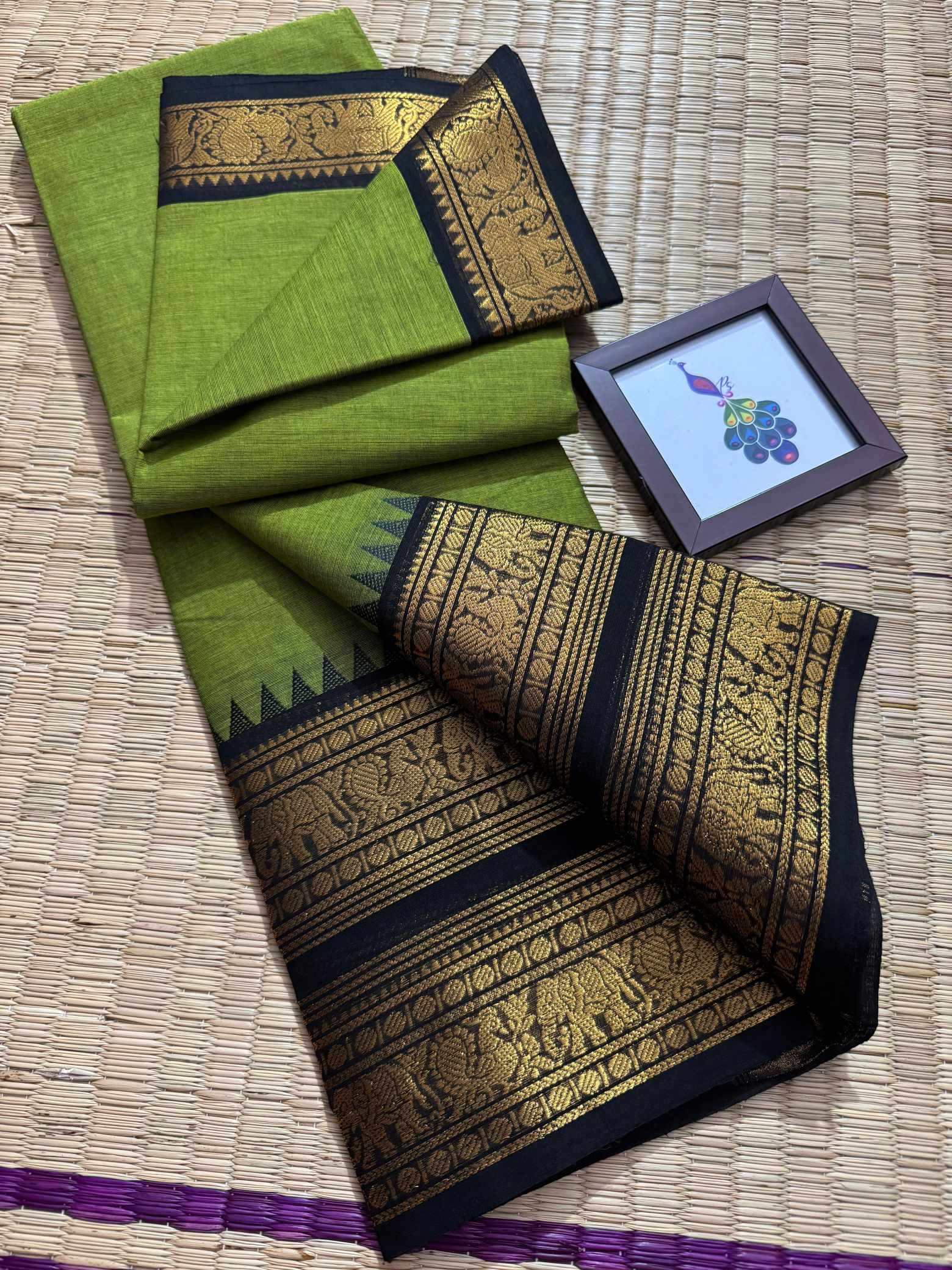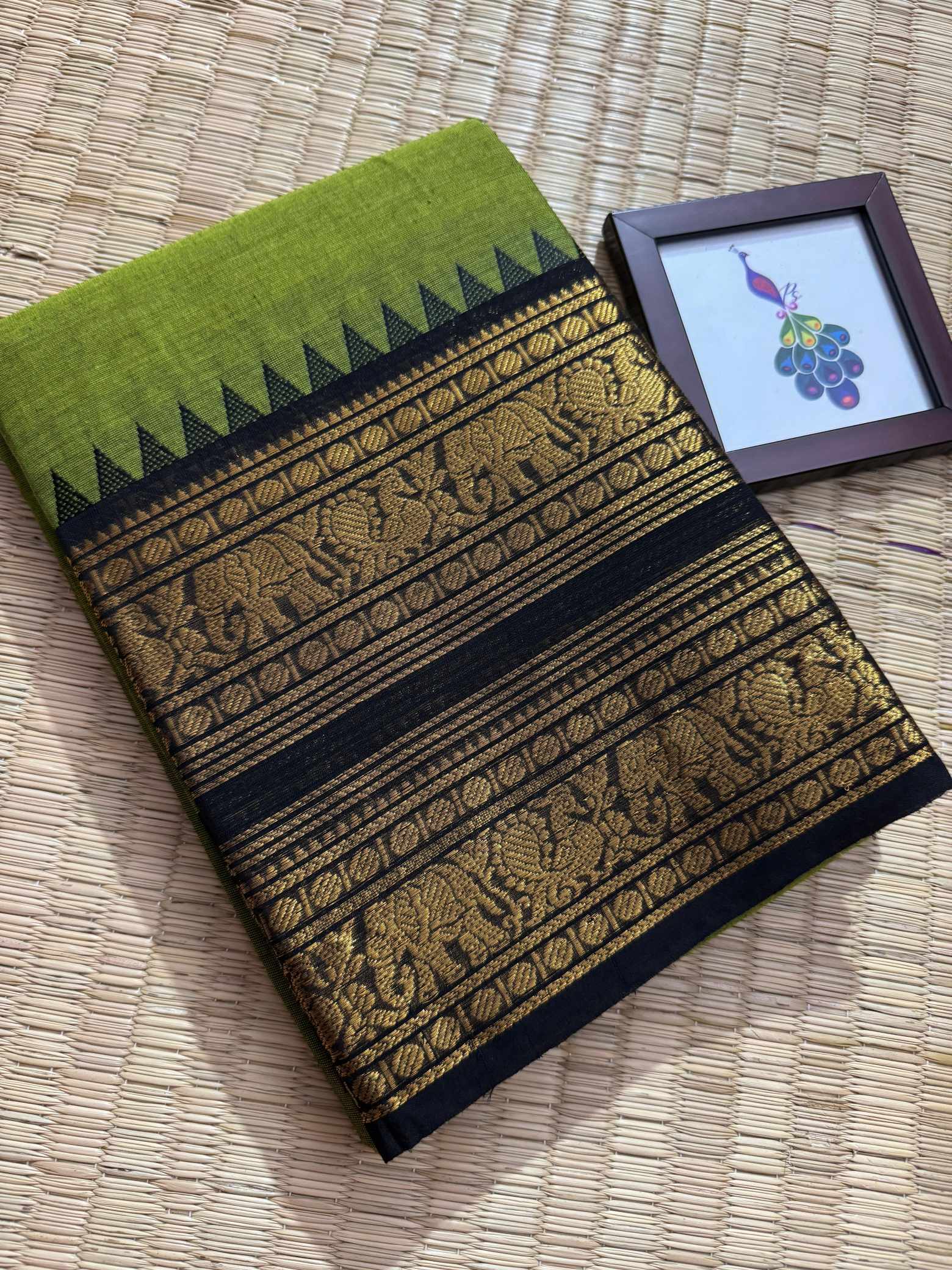 Grace meets tradition in this beautifully crafted starched cotton saree, designed to give you a crisp, structured, and richly elegant drape that holds its shape all day long. Perfectly suited for daily office wear, peaceful temple visits, and bright festive mornings, this saree blends comfort with timeless sophistication. The most-trending contrast colour combination instantly elevates your look, while the rich gold zari border adds a graceful, luminous finish that captures classic South Indian charm. A finely zari-woven pallu adorned with delicate tassels brings an extra layer of traditional elegance, flowing beautifully with every step you take. Lightweight yet regal, breathable yet luxurious, this saree is made for women who appreciate subtle grandeur without compromising on comfort. Whether paired with traditional jewellery for special occasions or styled simply for everyday elegance, it promises a polished, confident, and effortlessly rich appearance wherever you go.