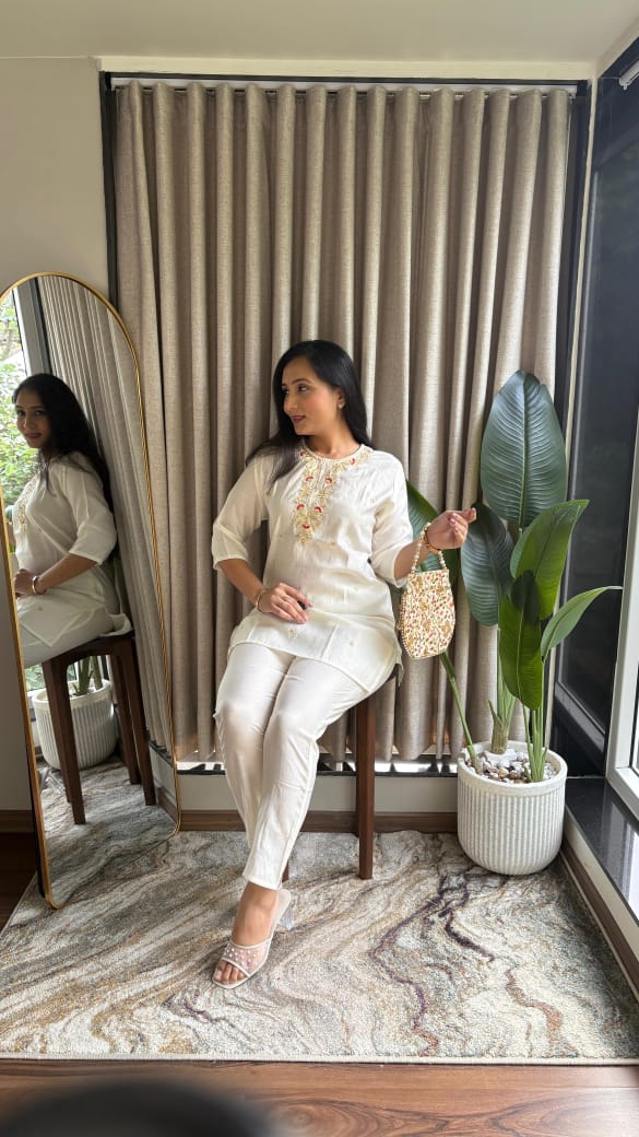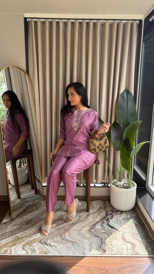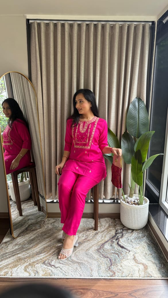 Step into festive elegance with this stunning Pure Modal Vertical Silk Cord Set, beautifully crafted to offer a perfect blend of luxury, comfort, and contemporary style. Designed from premium modal silk fabric, this outfit feels incredibly soft on the skin while giving a rich, graceful fall that enhances your silhouette. The vertical pattern adds a flattering elongated look, making it ideal for women who love classy yet modern ethnic wear. Adorned with heavy handwork detailing, the top exudes a refined festive charm, while the coordinated pant with miyani (extra seam allowance) ensures superior comfort and ease of movement throughout the day. This elegant set is perfect for festivals, family functions, small celebrations, office events, and special outings where you want to look sophisticated without compromising on comfort. Available in sizes M to 4XL, it caters to a wide range of body types, offering a confident and flattering fit for everyone. Lightweight, breathable, and easy to carry for long hours, this premium cord set is truly a must-have addition to your festive wardrobe, combining timeless elegance with everyday practicality.
