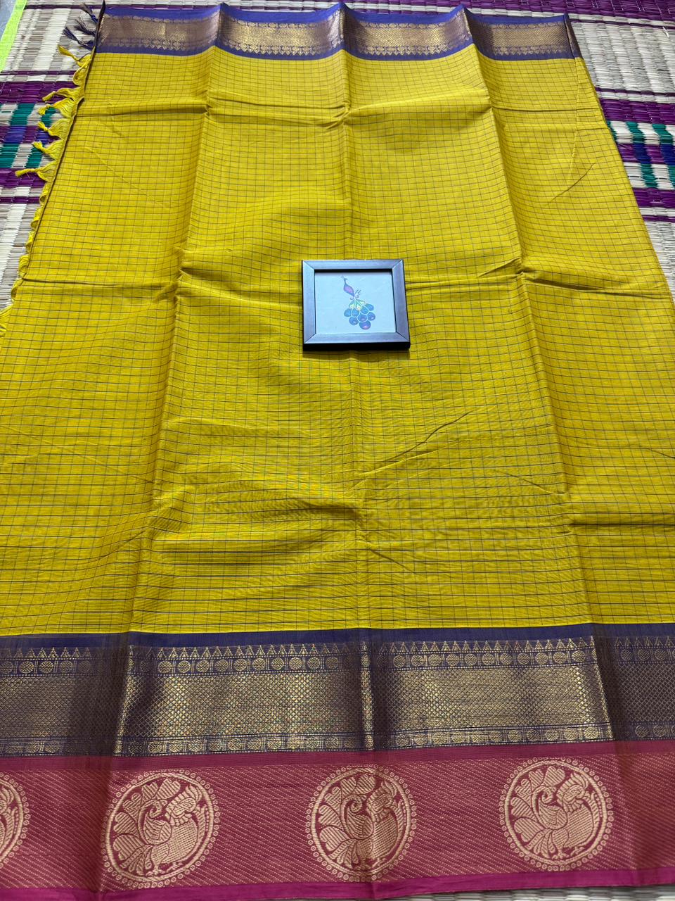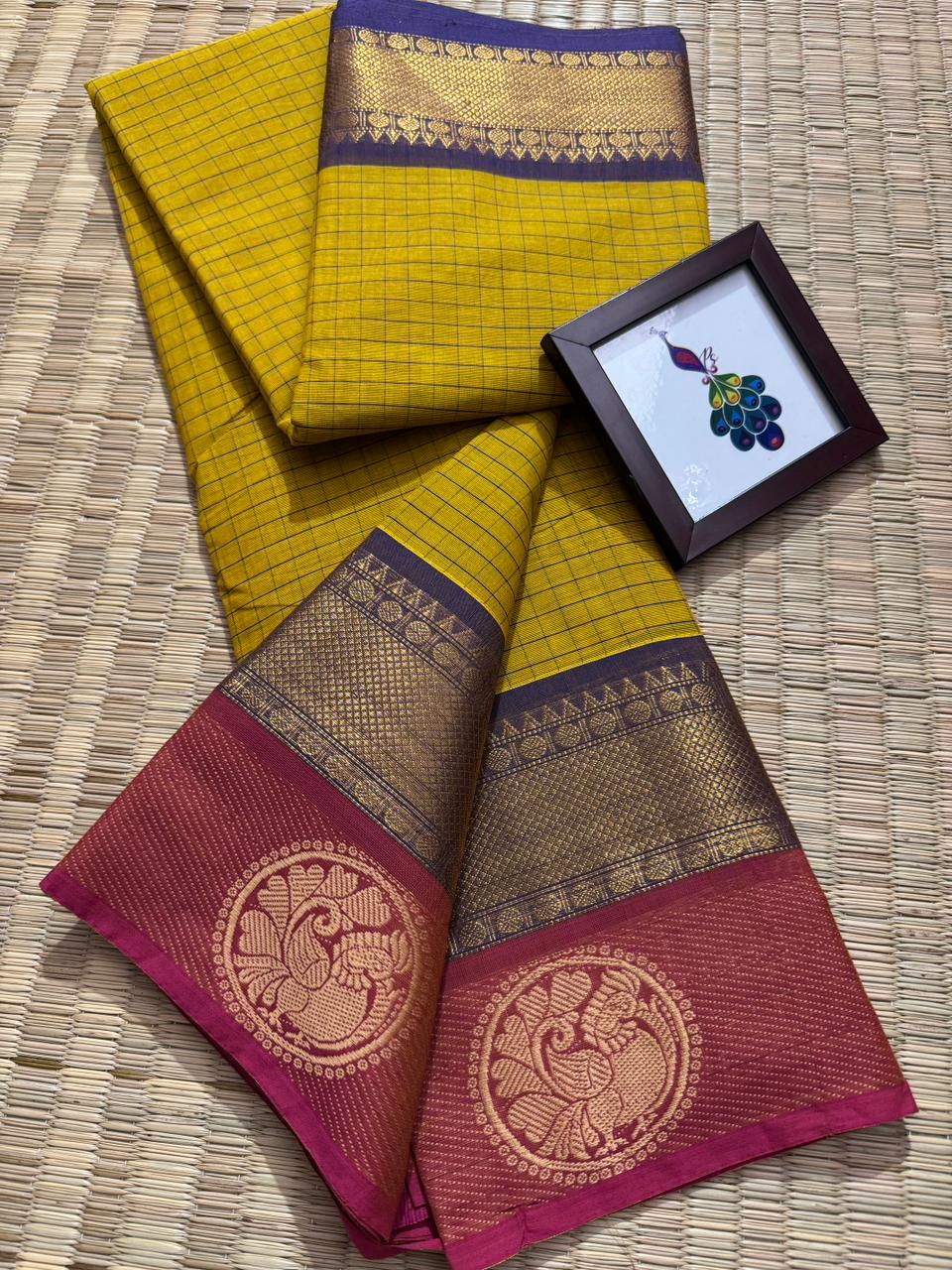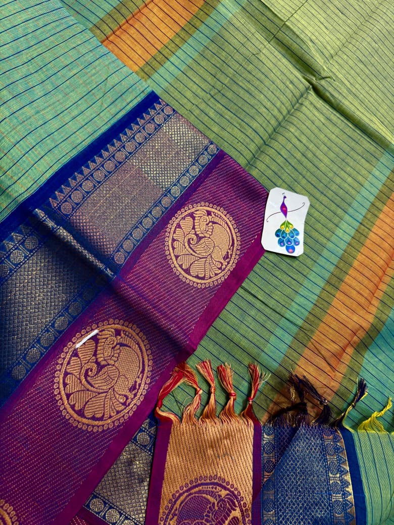 Another soft and smooth version of classic Kanchi cotton saree crafted for women who love comfort blended with timeless elegance, this saree features a graceful full body checks pattern that adds a refined and structured look while keeping the drape light and breathable for all-day wear, beautifully finished with a rich thread pallu adorned with delicate tassels that enhance its traditional charm, complemented by a neatly woven thread border that frames the saree with subtle sophistication, paired with a matching running blouse for a complete and versatile ensemble, perfect for office wear, casual elegance, festive mornings, and traditional gatherings, offering effortless style, comfort, and heritage charm in every fold.