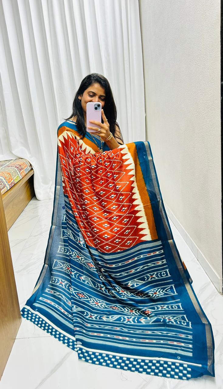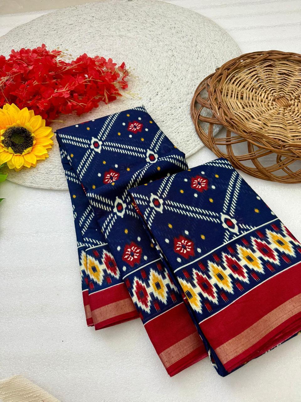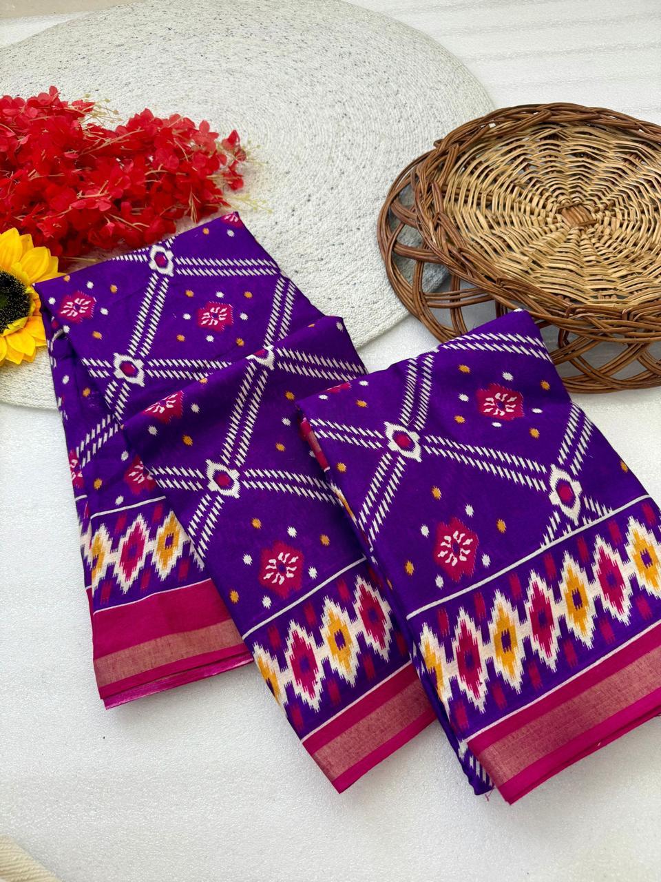 Sell fast, sell smart with this stunning Mal Cotton saree that’s made to grab attention instantly. Presenting a beautiful fast-time leheriya inspired saree blended with the rich charm of Patola and Bandhani style, giving you the look of original Ikkat elegance at an unbeatable value. Crafted in super soft mul mul cotton with a smooth vicos touch, this saree feels feather-light, breathable, and extremely comfortable for all-day wear. The floral body paired with a striking Patola-designed pallu creates a vibrant and festive appeal, while the super detailed pallu adds richness to every drape. Comes with a beautifully designed blouse featuring elegant sequence work that elevates the overall look instantly. Available in multiple attractive colours, this saree is perfect for daily wear, festive gatherings, casual functions, and quick styling needs. High demand, limited stock, fast-moving piece — book now and don’t miss this trending bestseller that delivers style, comfort, and value all in one.