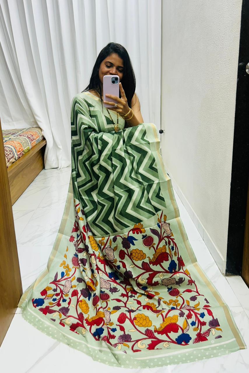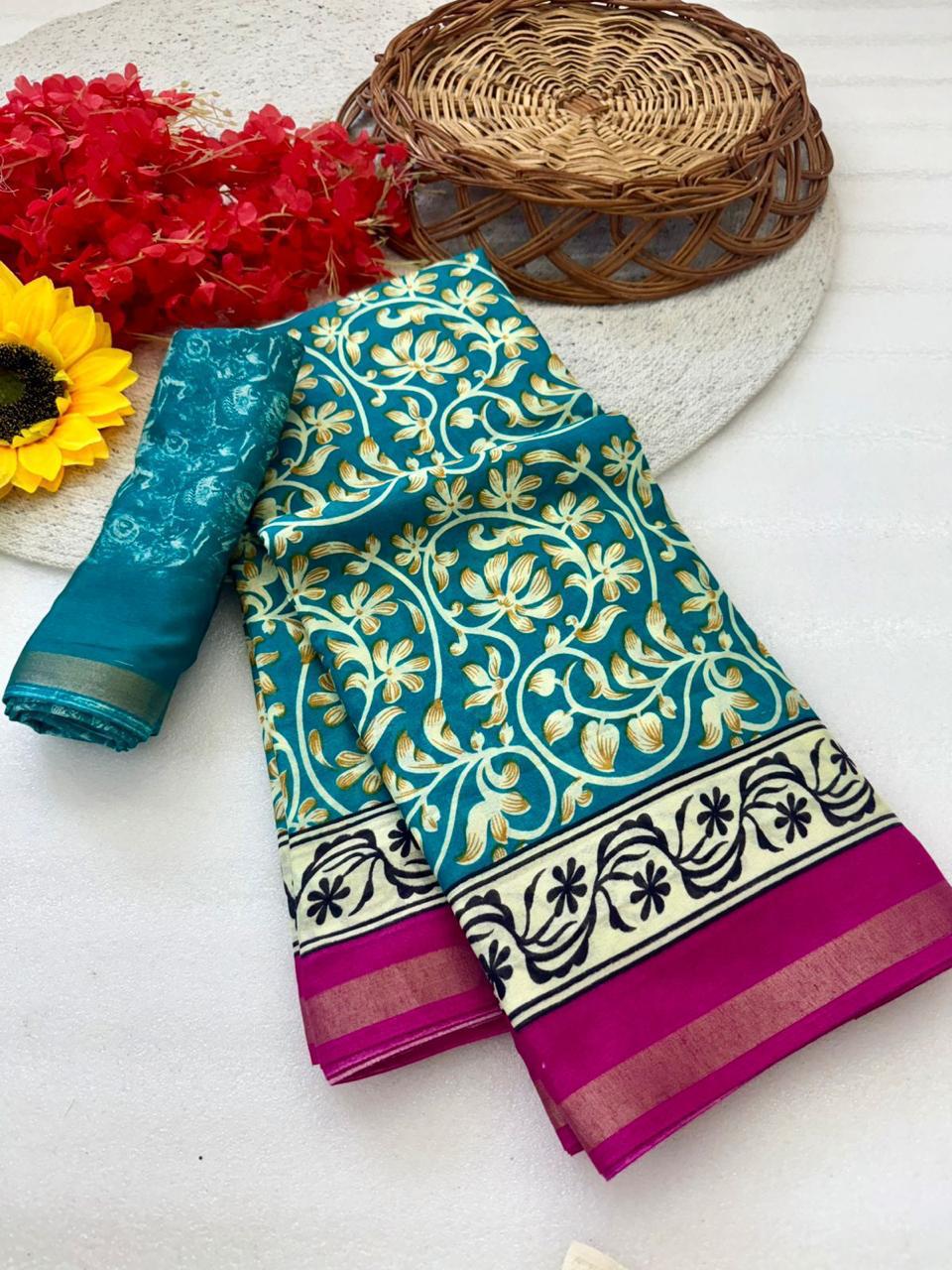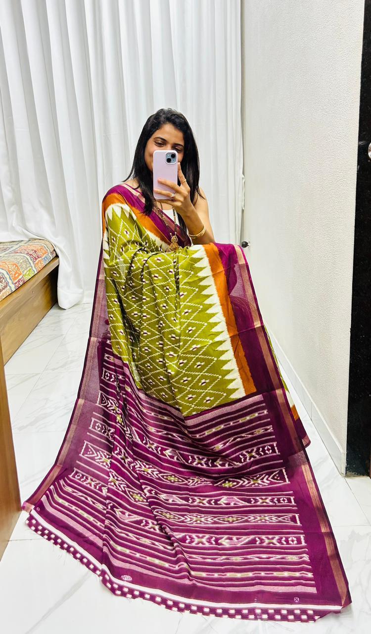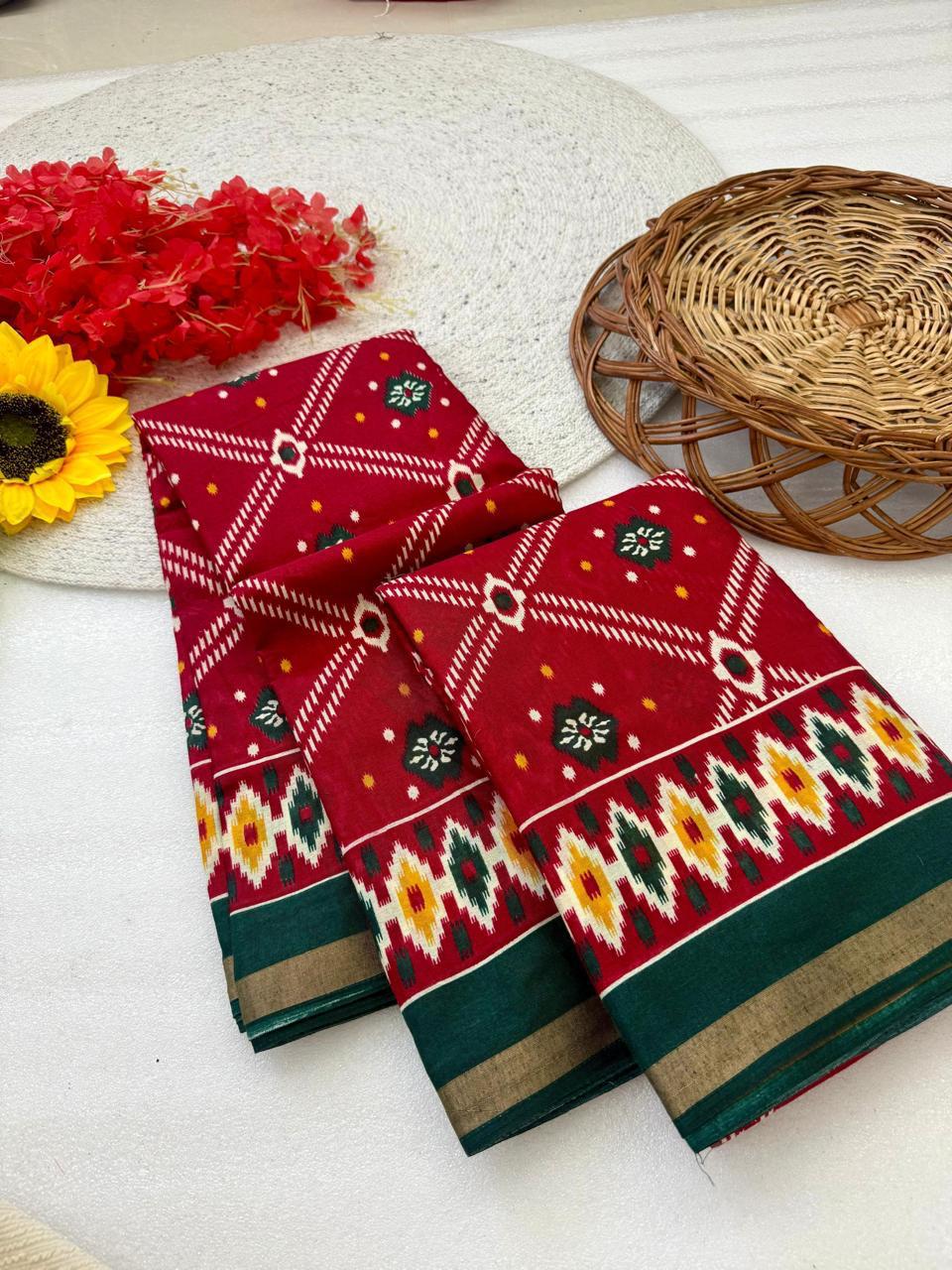 Sell fast, sell smart with this stunning Mal Cotton saree that’s made to grab attention instantly. Presenting a beautiful fast-time leheriya inspired saree blended with the rich charm of Patola and Bandhani style, giving you the look of original Ikkat elegance at an unbeatable value. Crafted in super soft mul mul cotton with a smooth vicos touch, this saree feels feather-light, breathable, and extremely comfortable for all-day wear. The floral body paired with a striking Patola-designed pallu creates a vibrant and festive appeal, while the super detailed pallu adds richness to every drape. Comes with a beautifully designed blouse featuring elegant sequence work that elevates the overall look instantly. Available in multiple attractive colours, this saree is perfect for daily wear, festive gatherings, casual functions, and quick styling needs. High demand, limited stock, fast-moving piece — book now and don’t miss this trending bestseller that delivers style, comfort, and value all in one.
